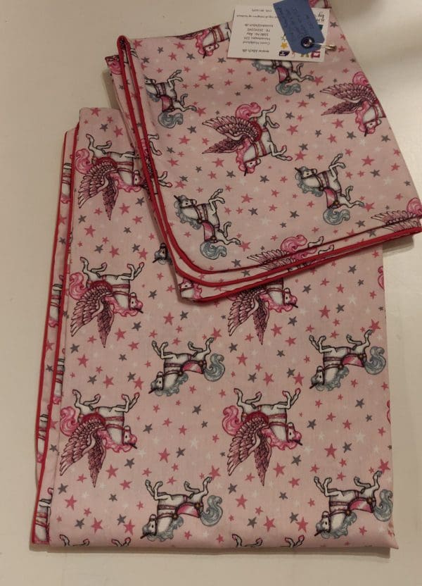 Baby sengetøj, Lyserød med fairytale unicorn og pink kanter.