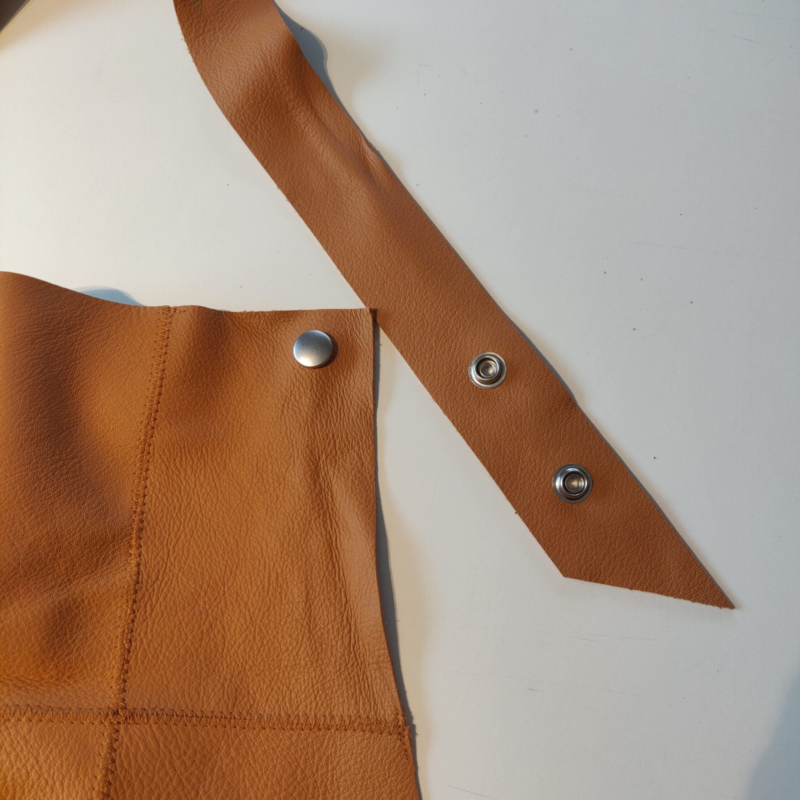 Smukt forklæde i lækkert skind, som over tid og brug vil blive smukkere og få patina.