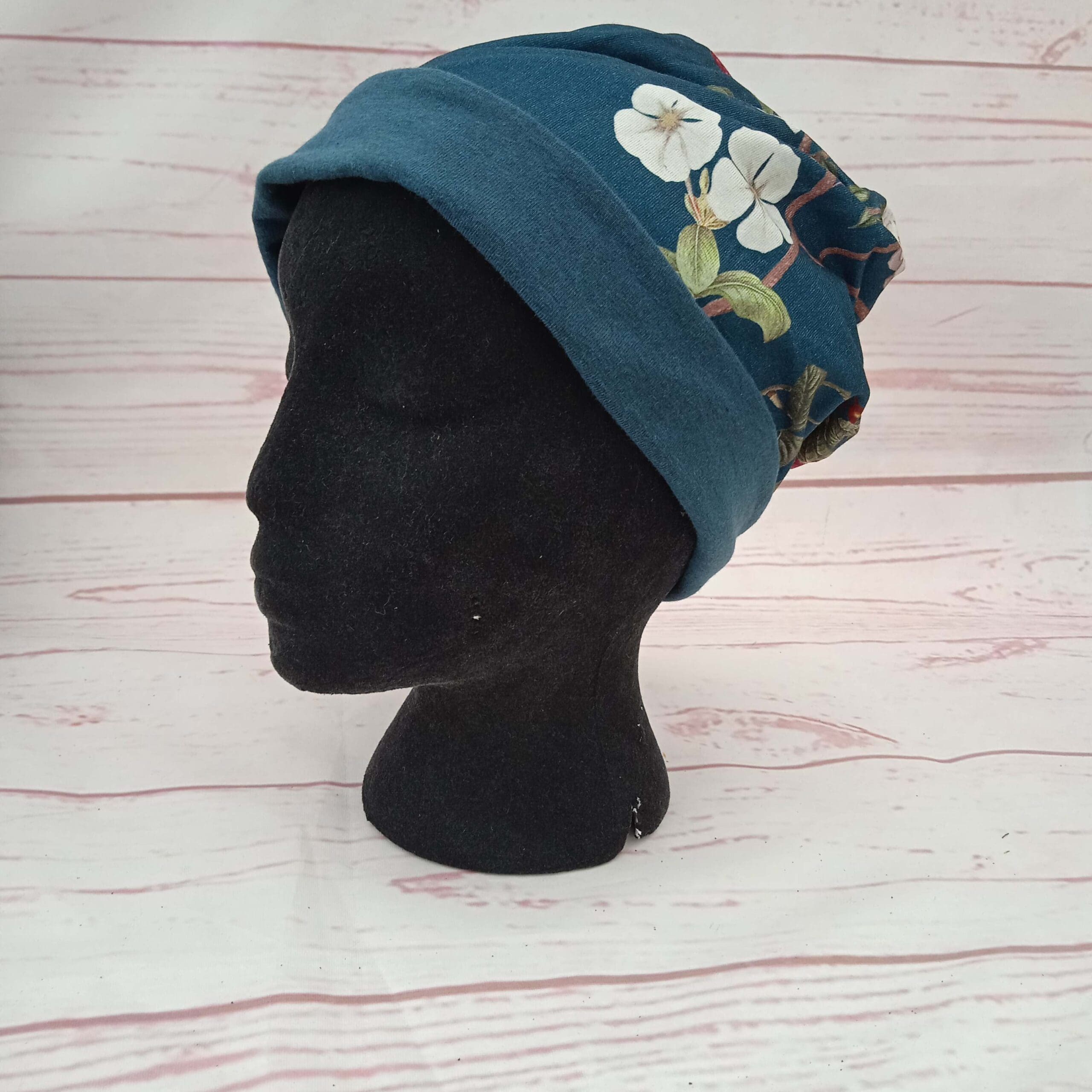 Hue med Blomster. Str 54/62 cm 10-99 år