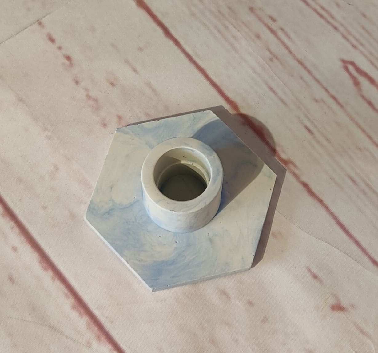 Kantet lysestage, i lyseblÄ marbel.