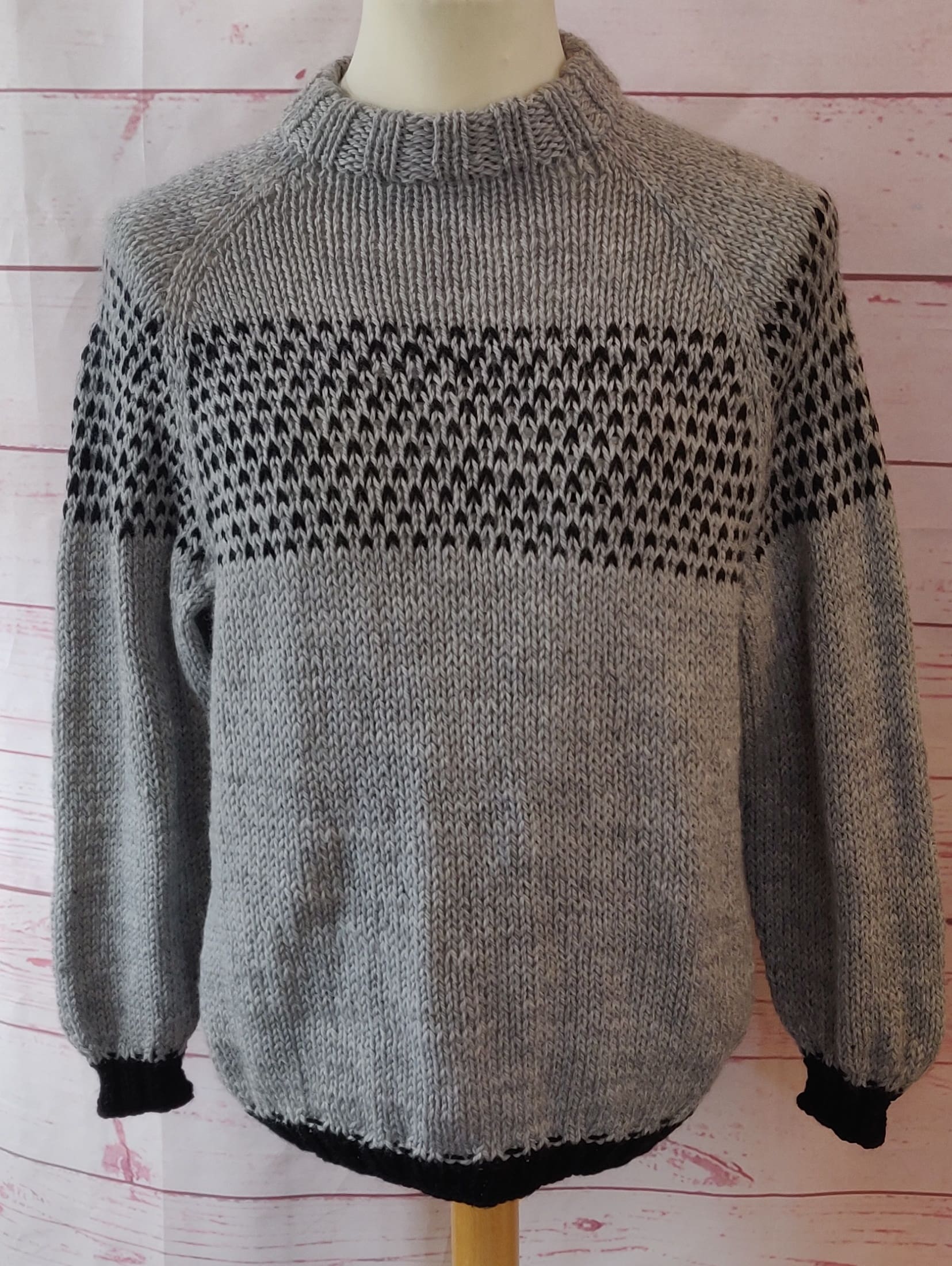 Lækker strik, Grå med sort. Str. m – Unisex