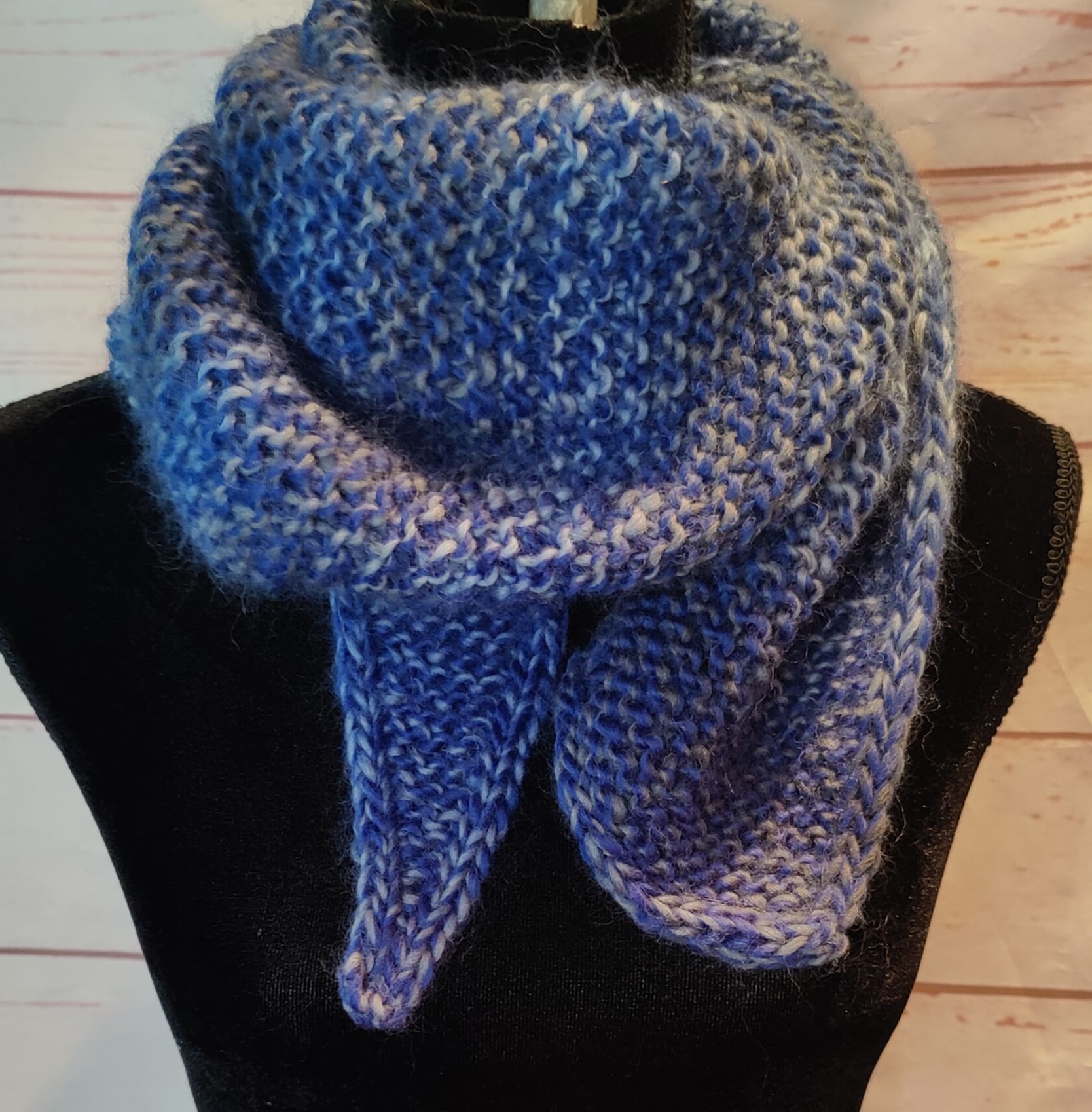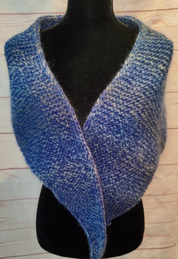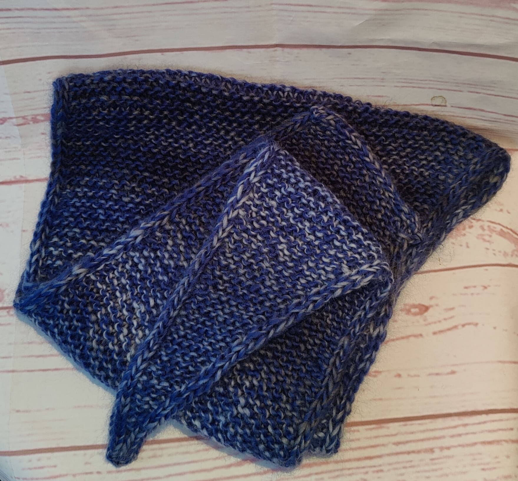 Lækkert asymmetrisk sjal/tørklæde strikket i uld.