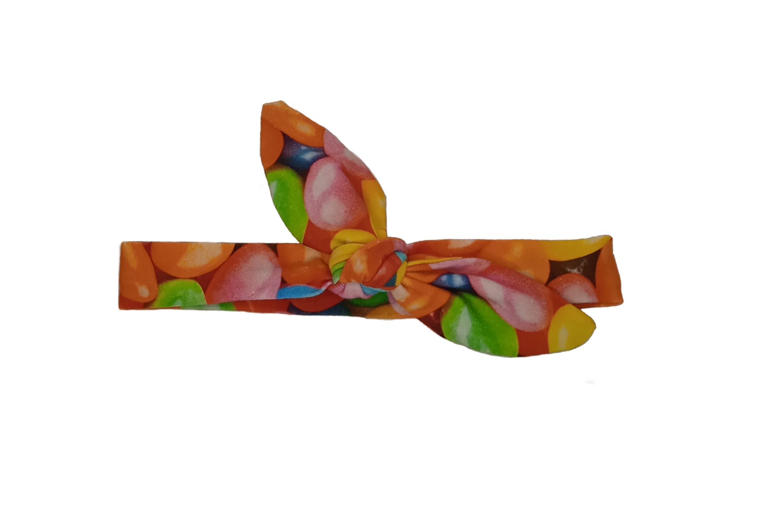 Håndlavet blødt hårbånd til baby. Hårbåndet er lavet i strækbar bomuldsjersey, og det sidder behageligt uden at stramme. Den fine sløjfe foran giver et ekstra pift til både hverdag og særlige anledninger.