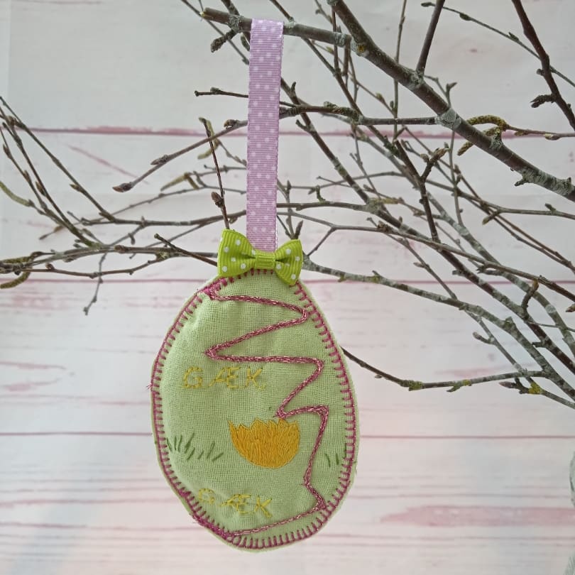 Det skæve, sjove, uperfekte påskepynt syet af genbrugsguld,