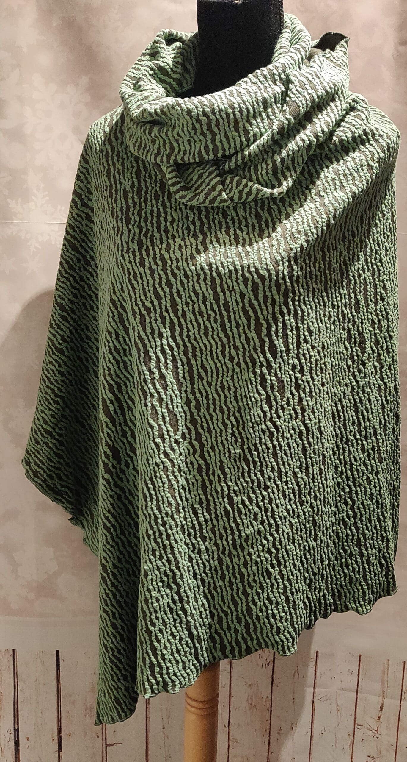 Poncho i lækker grønne nuancer inc. tube tørklæde.