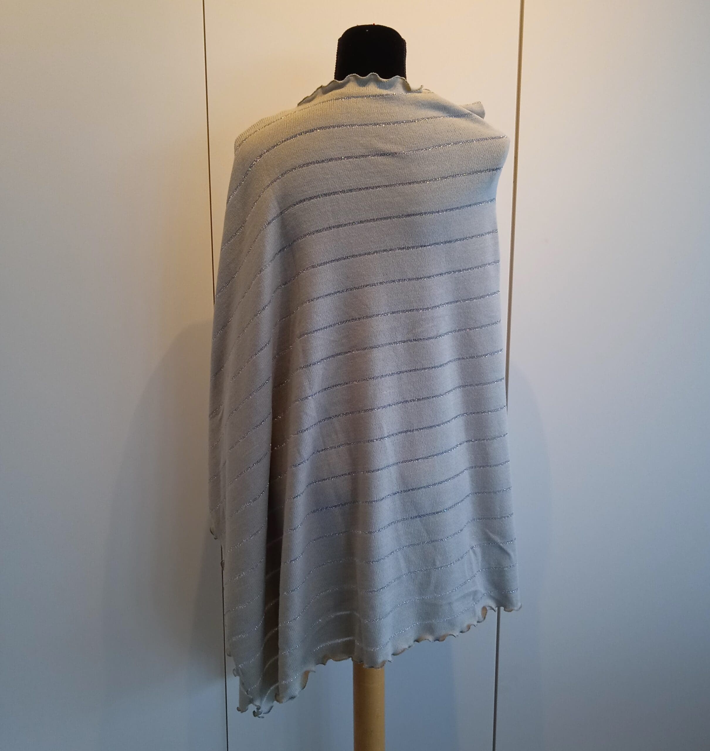 Sæt lidt glimmer på hverdagen, og løft et outfit med denne poncho. Både glimmer og det asymmetriske snit giver visuel interesse til dit outfit.