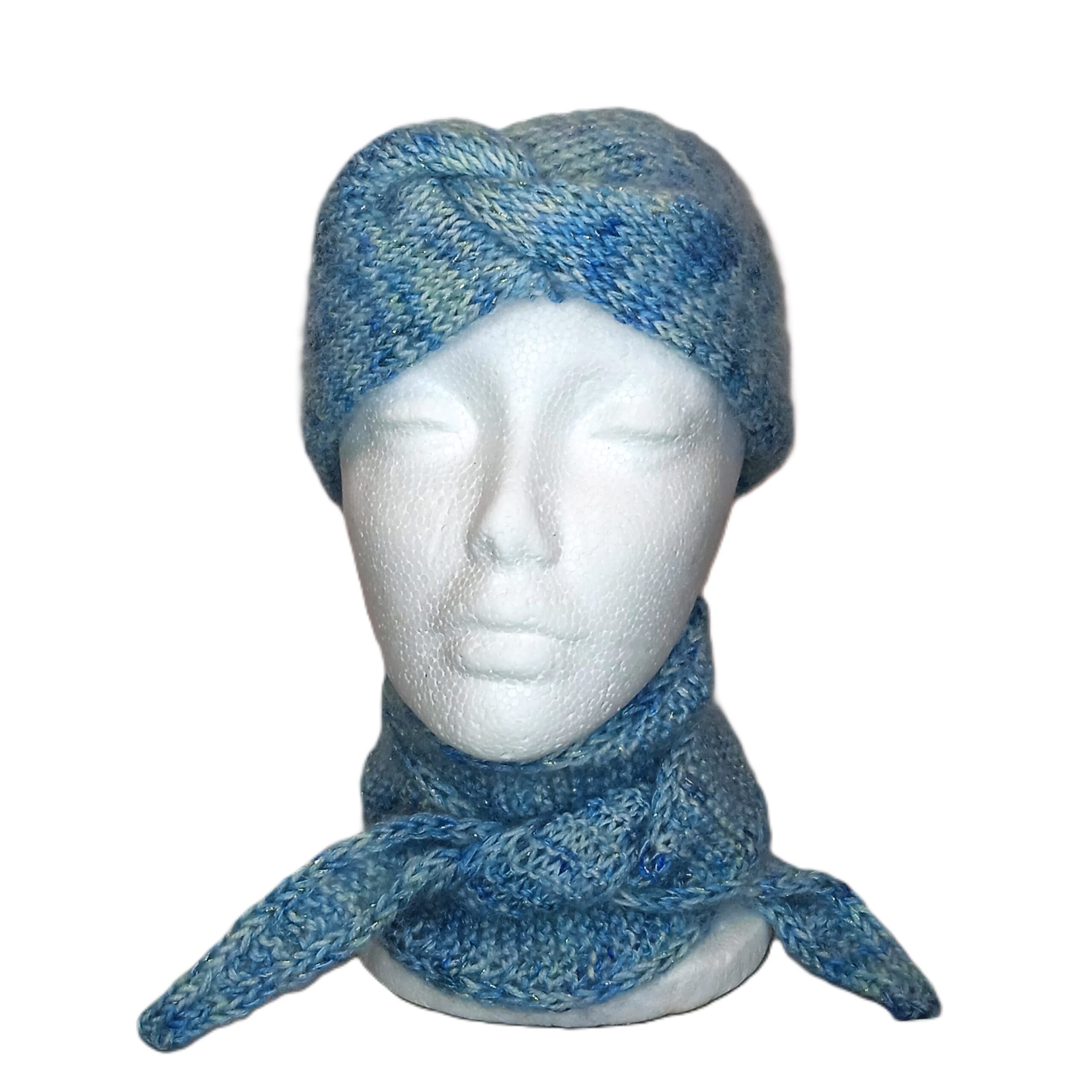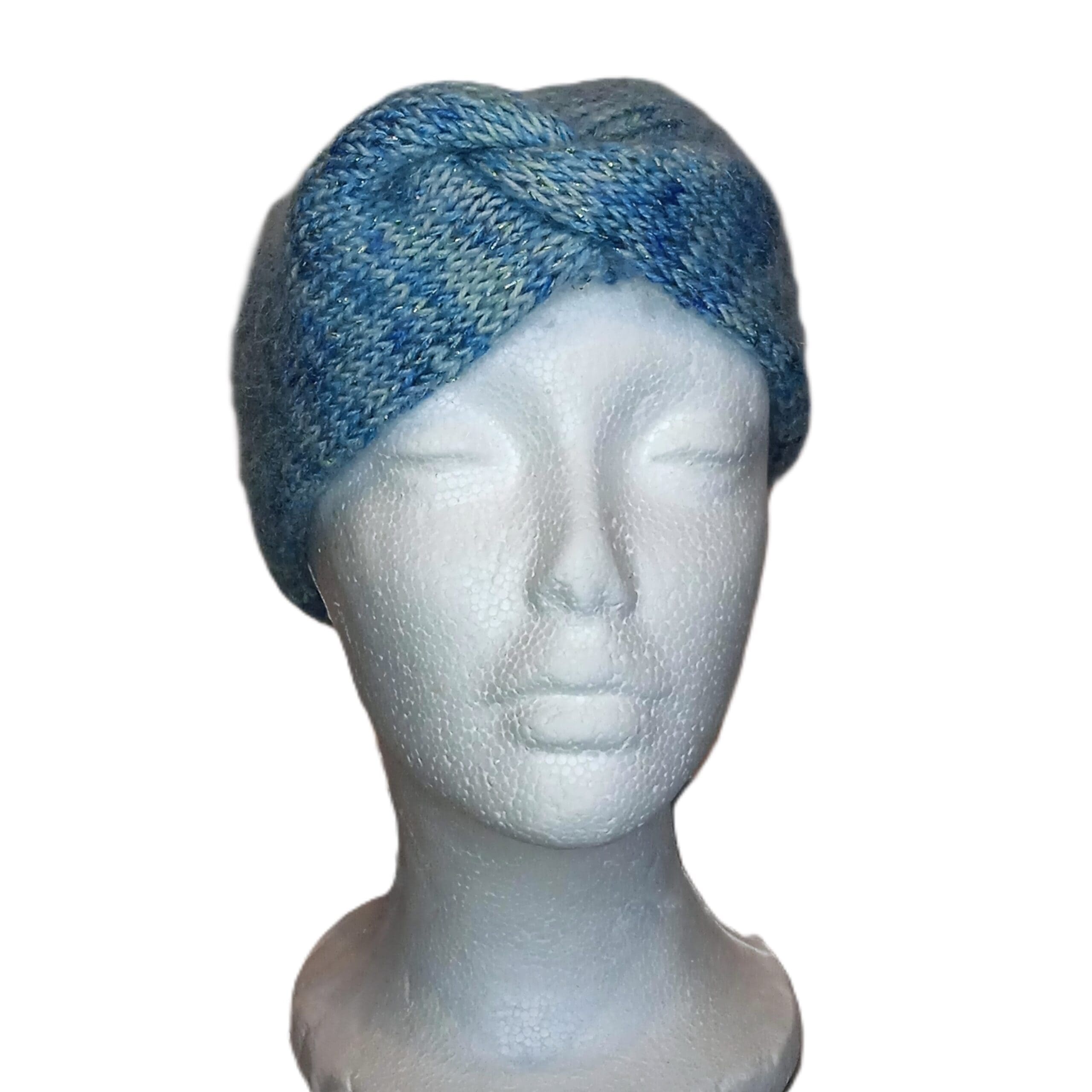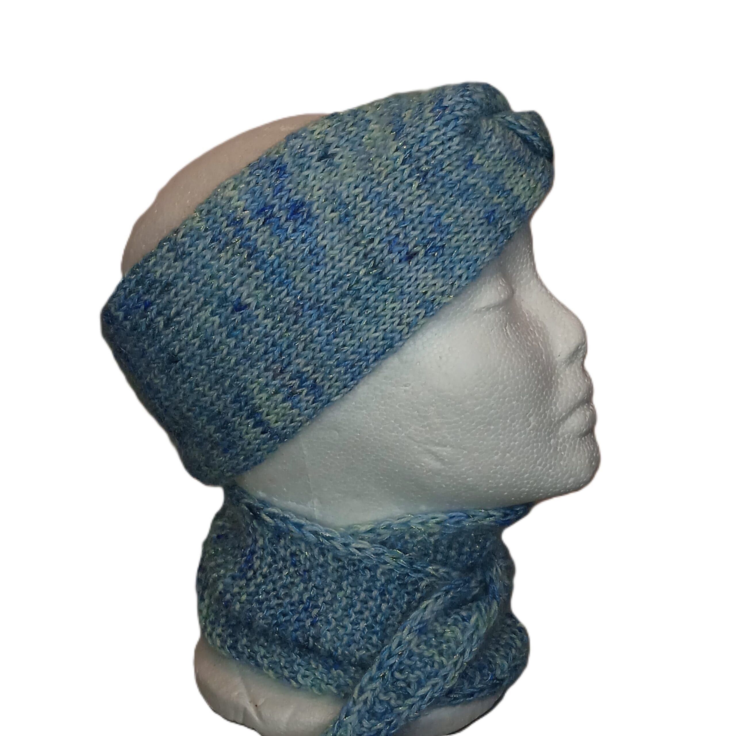 Strikket blå pandebånd/ørevarmere