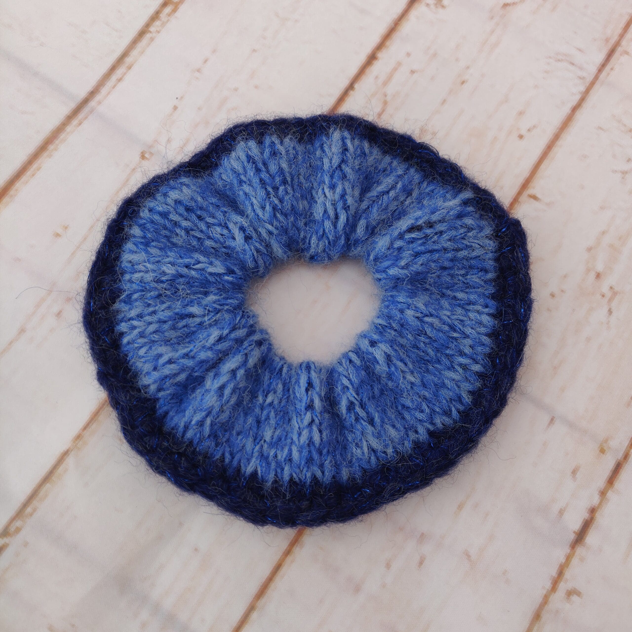 Strikket Scrunchie, Blå med lidt glitter