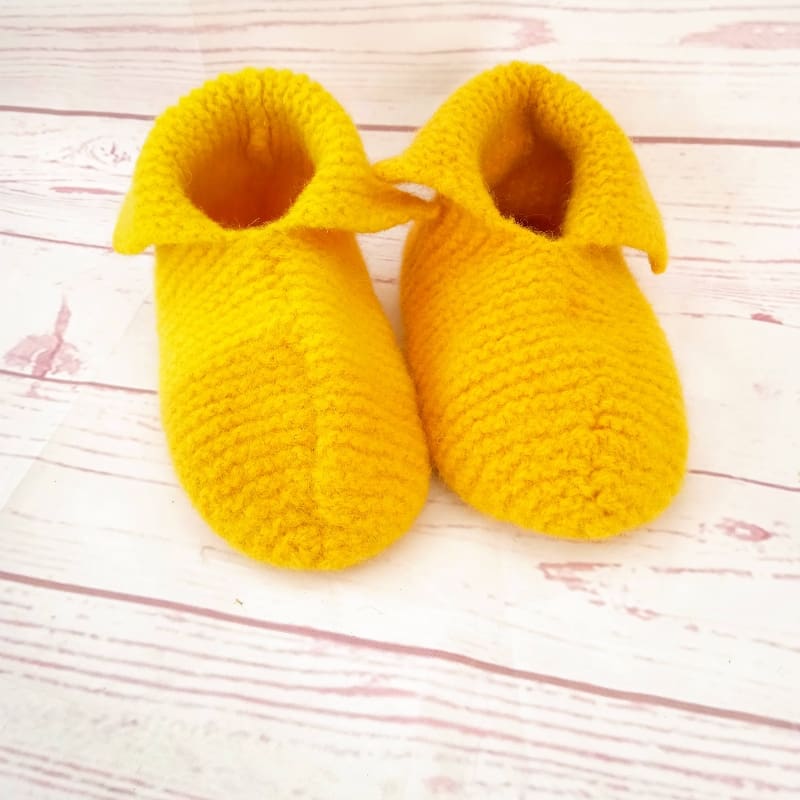 Lækre varme sutsko, strikket i uld og filtet i vaskemaskinen.