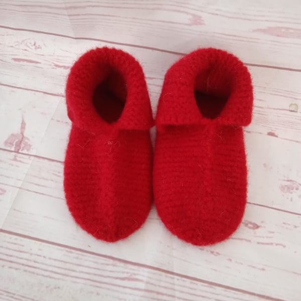 Lækre varme sutsko, strikket i uld og filtet i vaskemaskinen.