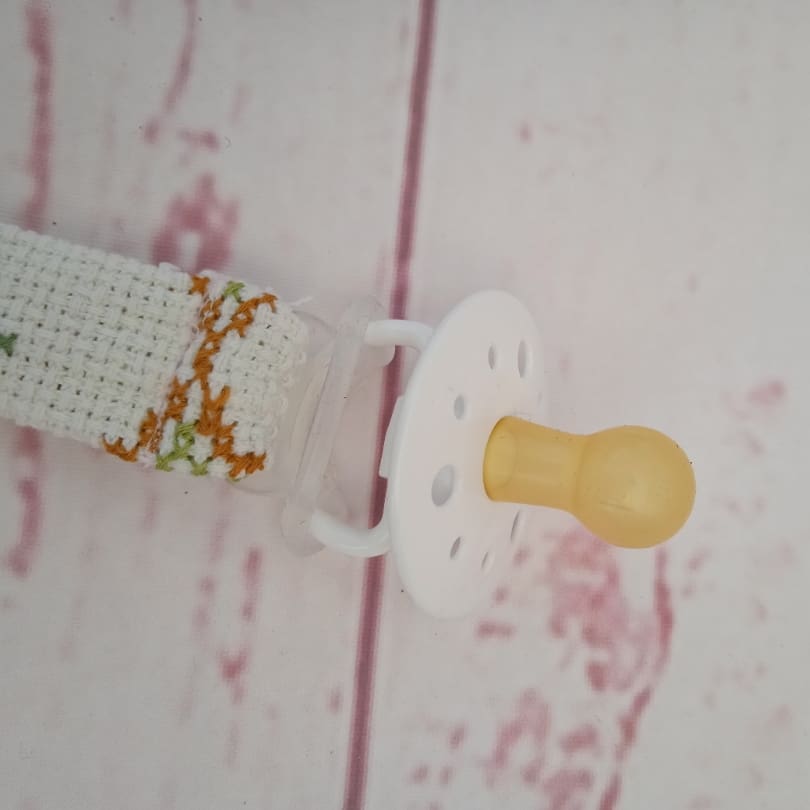 Med gummering til fastgørelse af sutten og passer derfor til alle sutter.