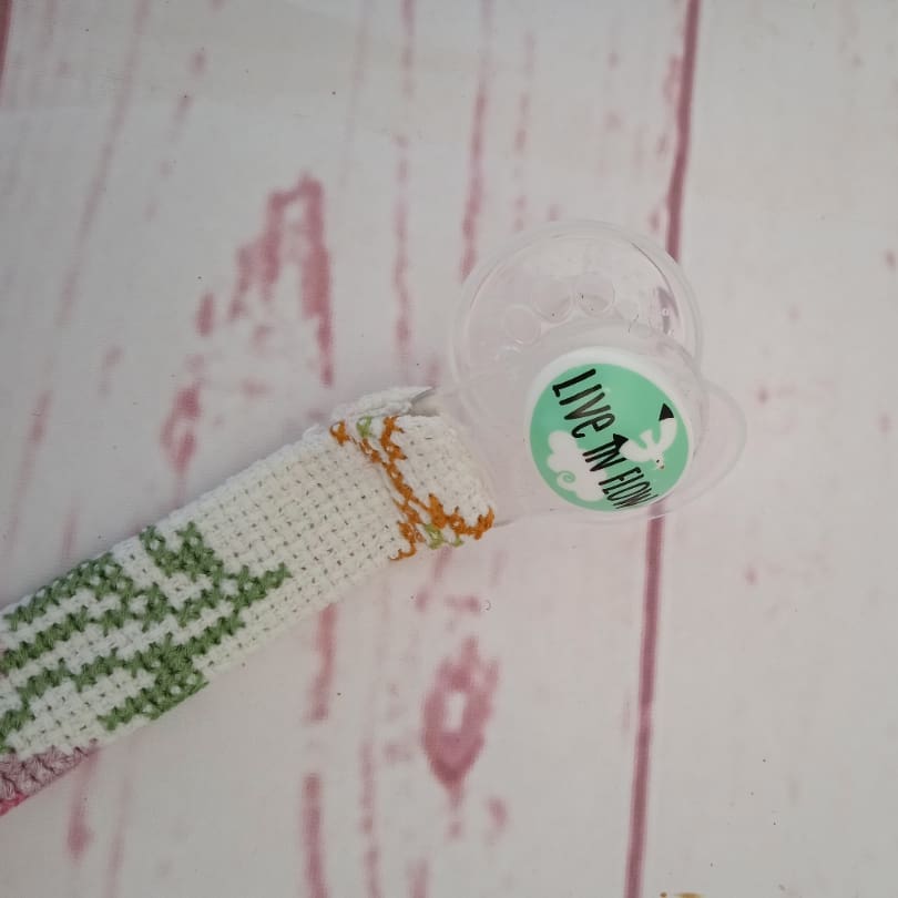 Suttesnoren sættes fast på Barnes tøj ved hjælp af en clips.