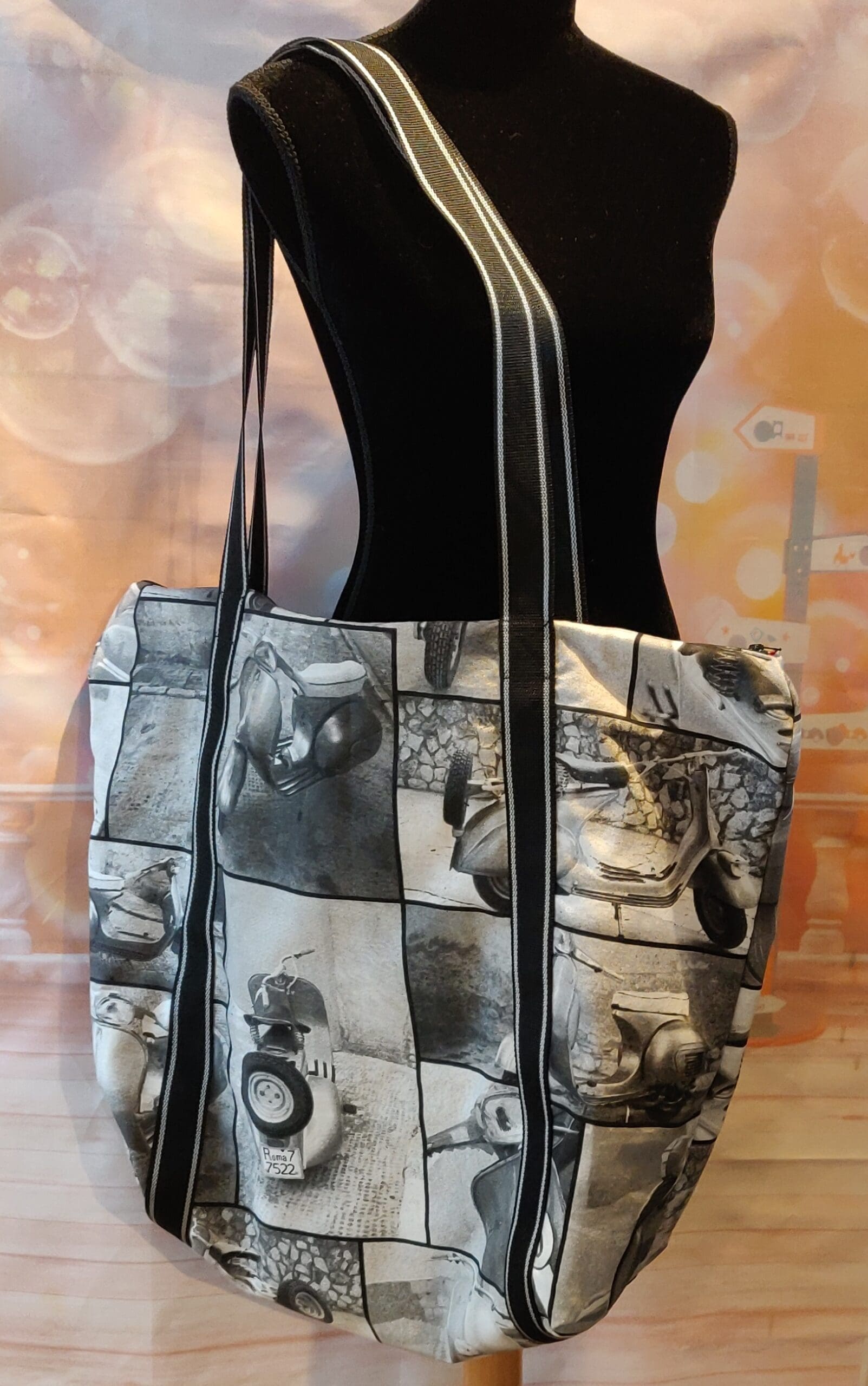Weekend shopper med retro scooter.